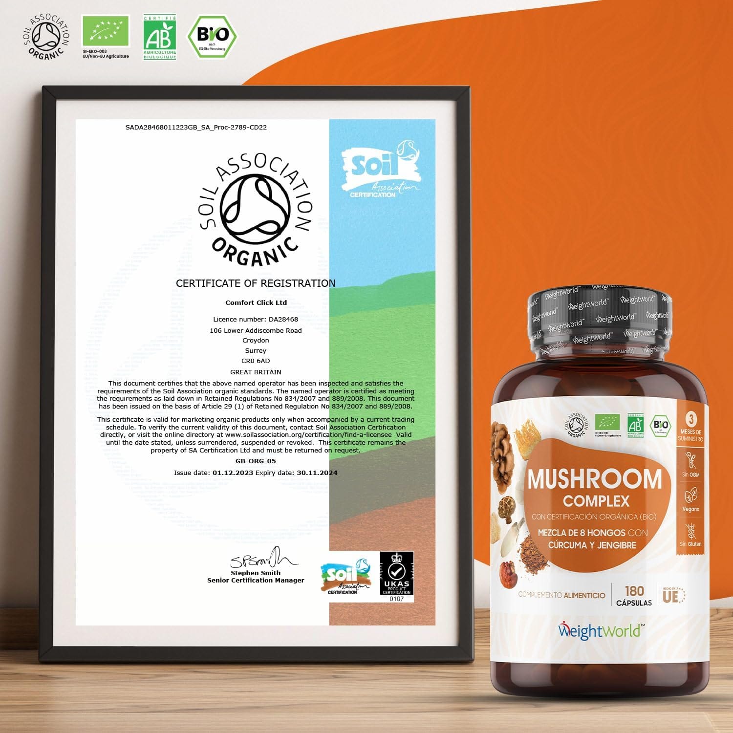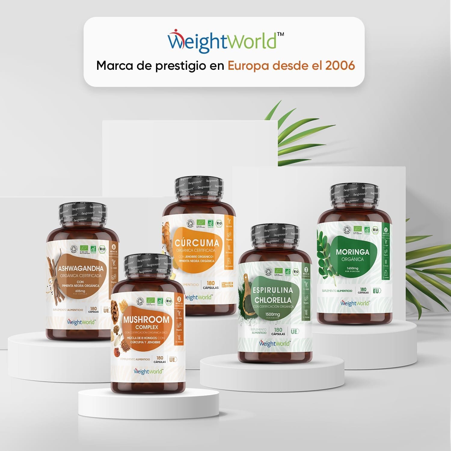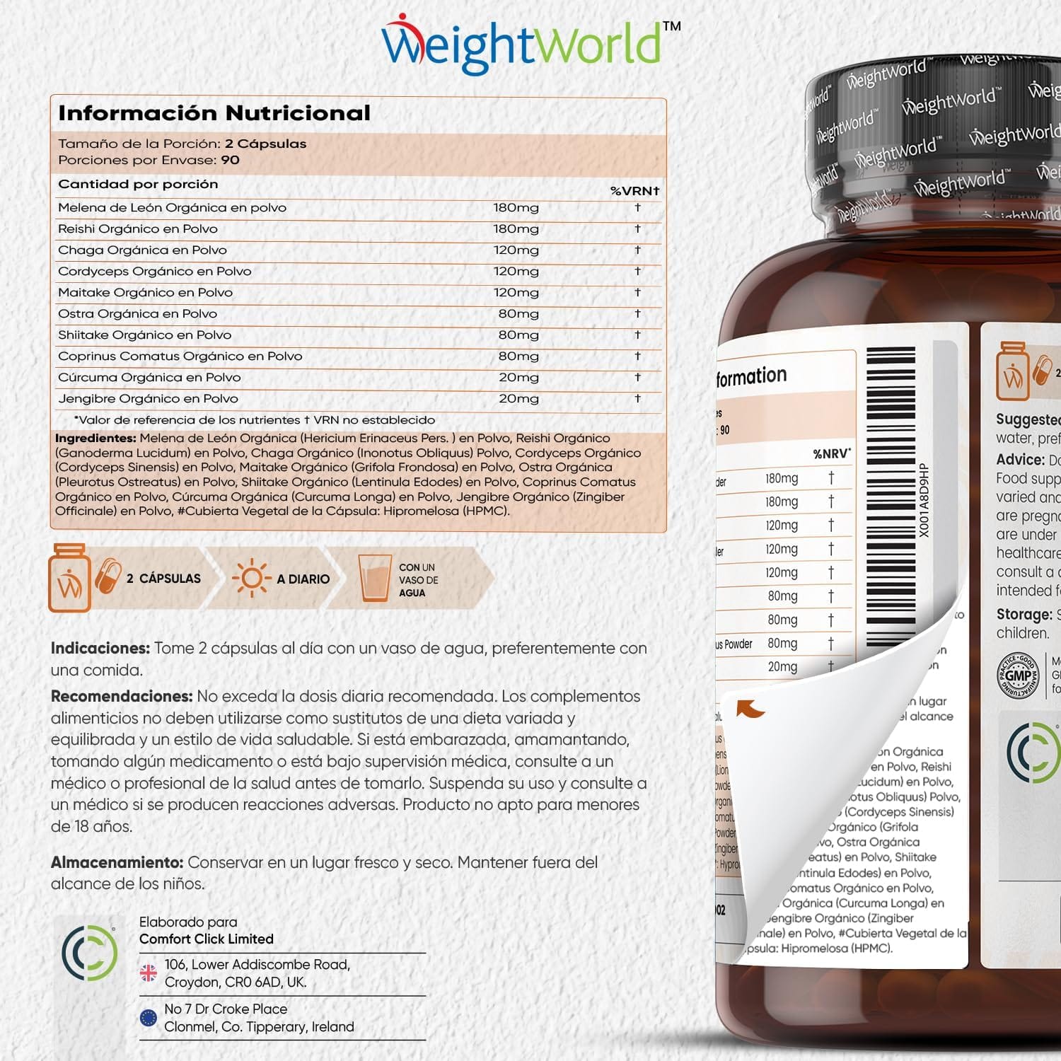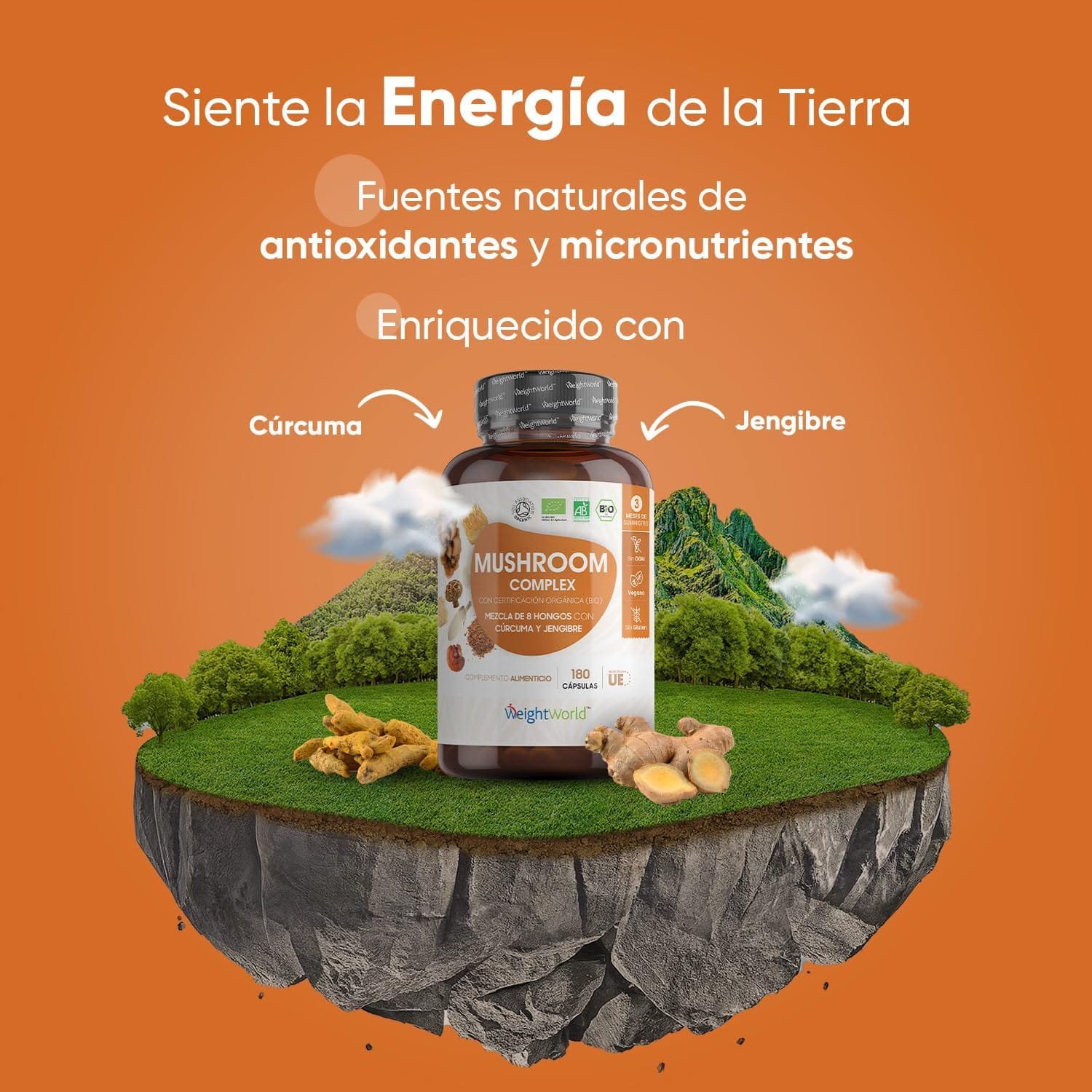 - Hongos Complex de WeightWorld con 8 setas y hongos para tratar el VPH: como el Reishi, Shiitake, Maitake, combinados con el toque mágico de la Melena de León y Hongo Chaga. Enriquecida con Jengibre y Cúrcuma.