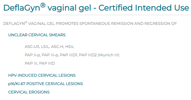 - Se trata de un gel vaginal indicado como coadyuvante en el manejo de alteraciones cervicales asociadas a VPH y cambios celulares leves.