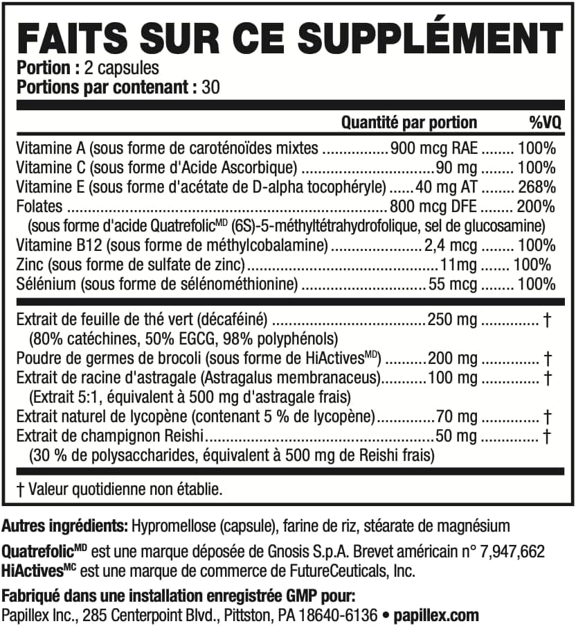- FÓRMULA: licopeno y carotenoides, extracto de brote de brócoli, extracto de té verde, folato, vitaminas C, E y B12, zinc, selenio, astrágalo y hongo reishi.
