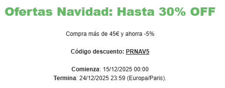 5% dto. en compra superior a 42€ o 8% dto. en compra superior a 72€ Válido hasta 24/12/2025. No acumulables. Se excluyen categorías Medicamentos y Leches de 0-6 meses o especiales.